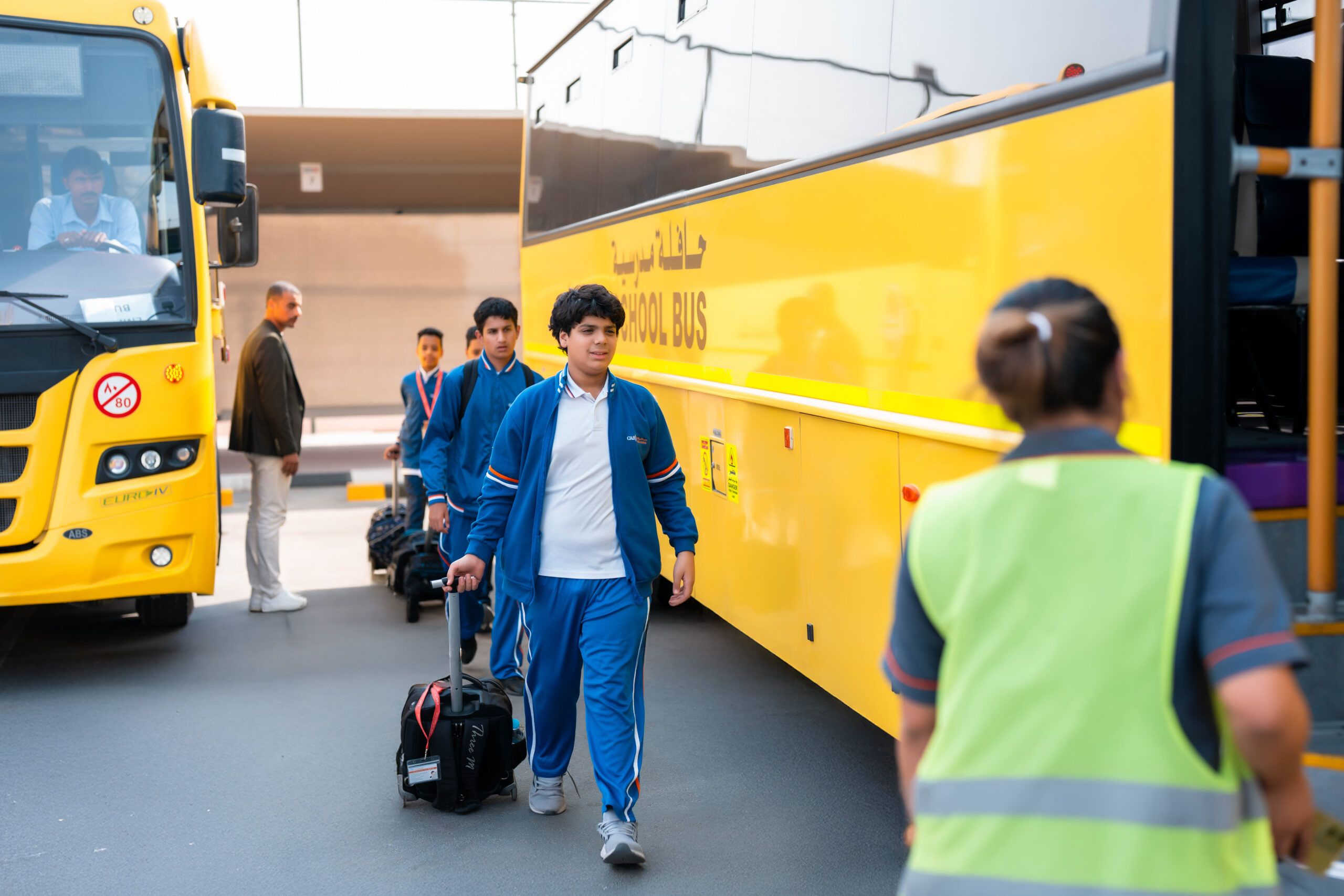 City American School provides transportation for students in air-conditioned shuttle buses.